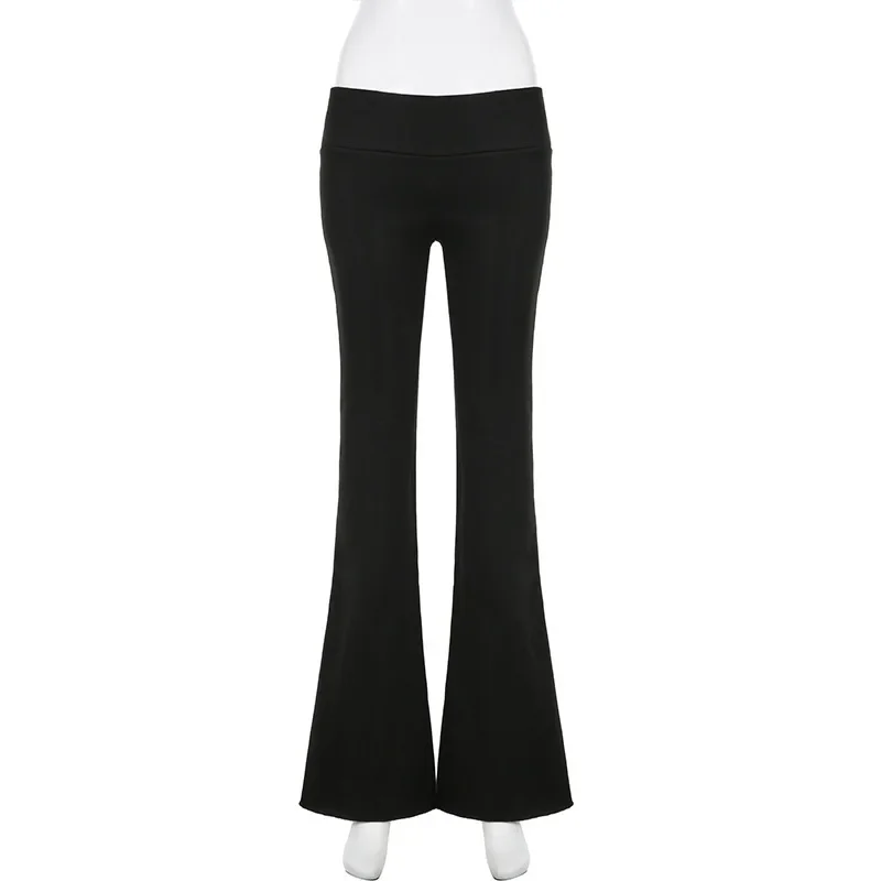 Casual Sexy Basic Solid Flare Pants Y2K Slim Low-Waisted Boot Cut Pants Women 2024 Autumn Spring Fashion Streetwear Lady