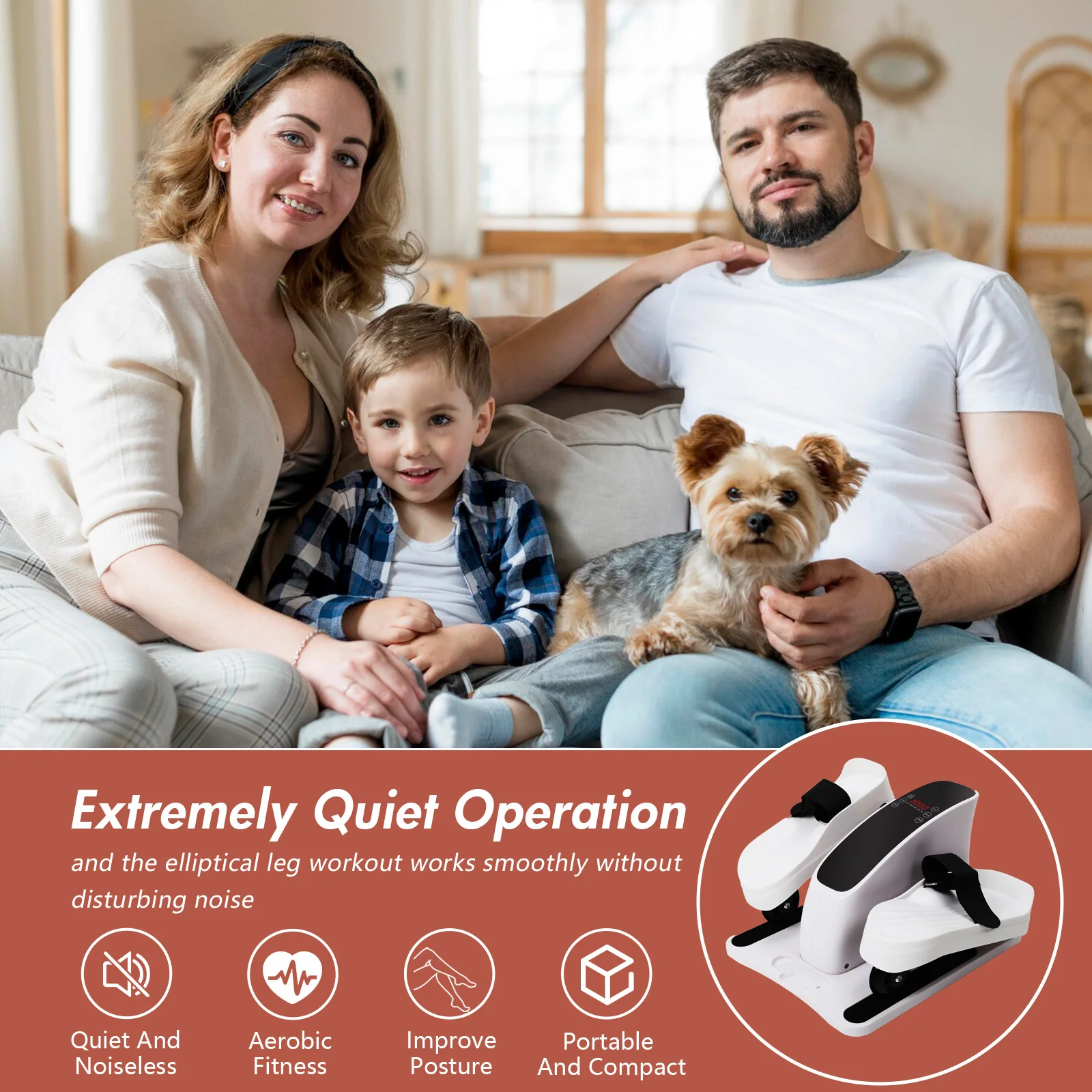 【Quiet and Smooth, Enjoy Peaceful Workout Sessions】Featuring advanced belt drive and magnetic resistance technology, this elliptical ensures quiet and stable motion. Whether at your desk, beside the sofa, or next to the dining table, you can enjoy a workout session without disturbing others. Compact and easy to move, it’s ready for a healthy journey anywhere, anytime.