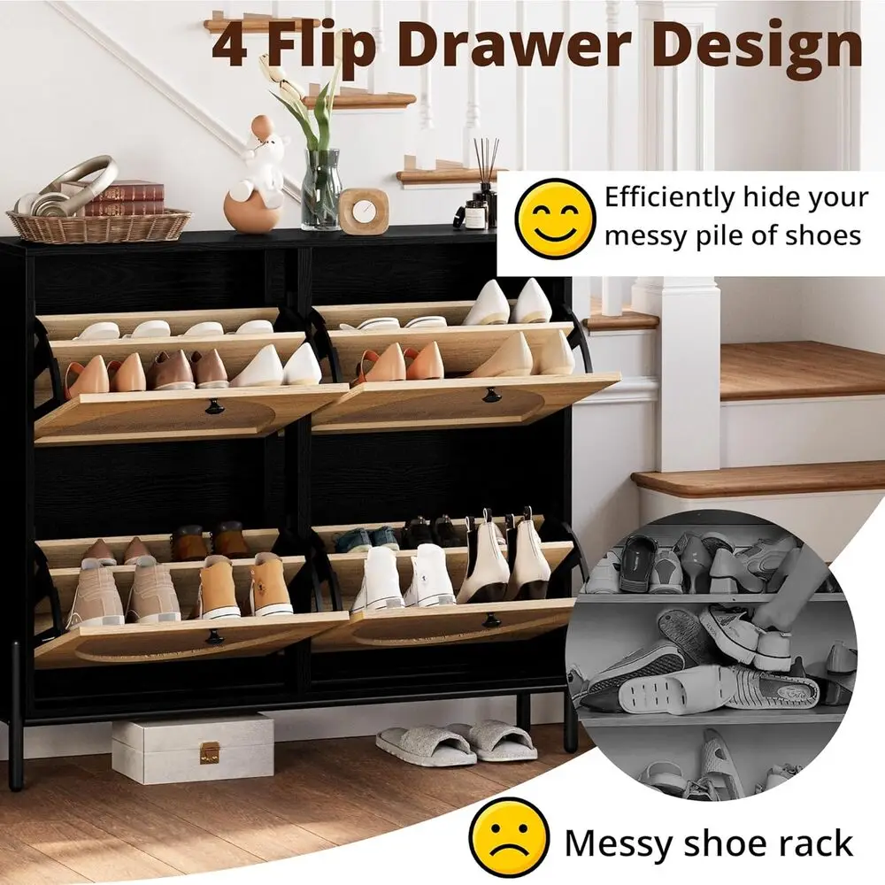 IRONCK Rattan Shoe Cabinet Storage with 4 Flip Drawers, Freestanding Shoe Storage Organizer Cabinet, Narrow Shoe Rack Cabinet