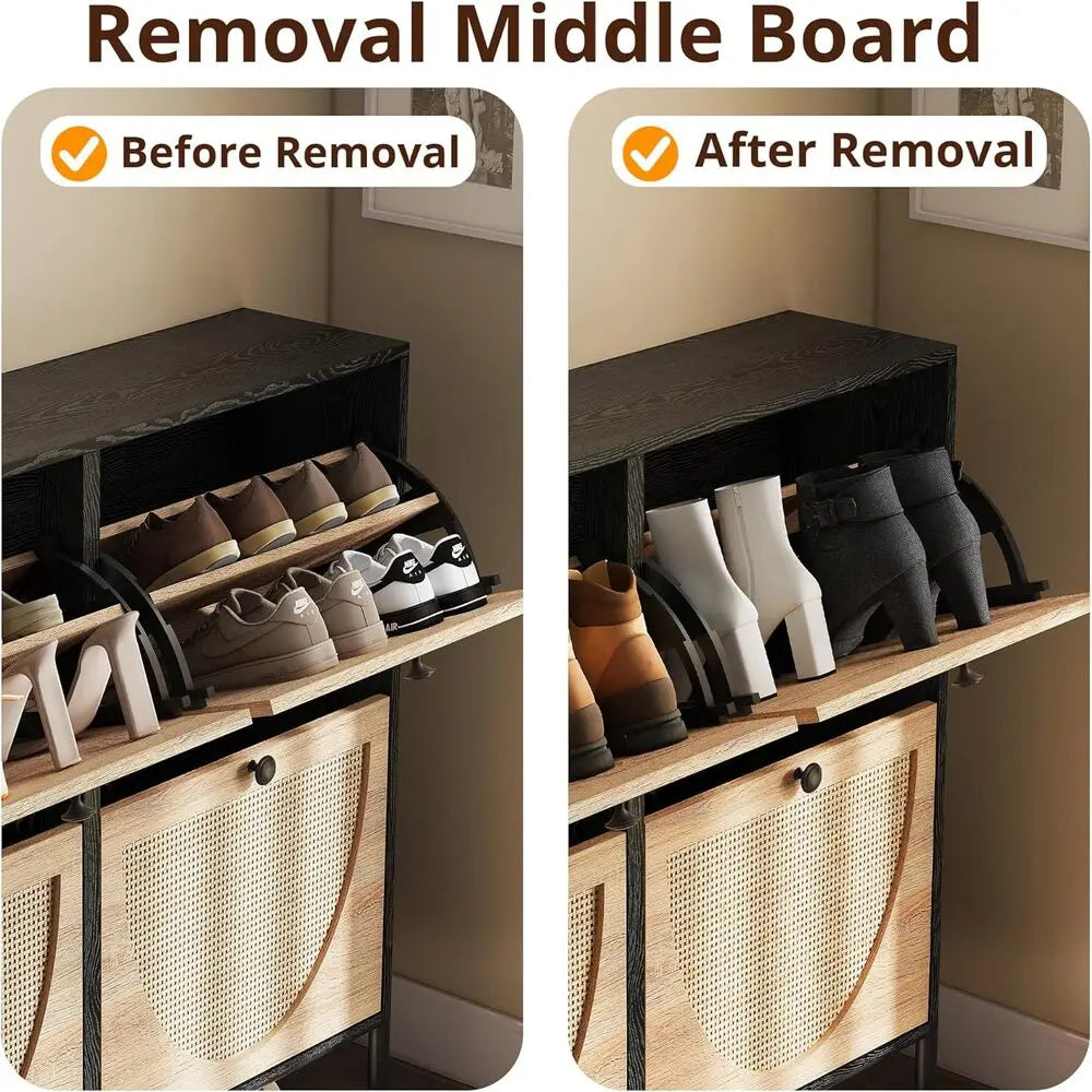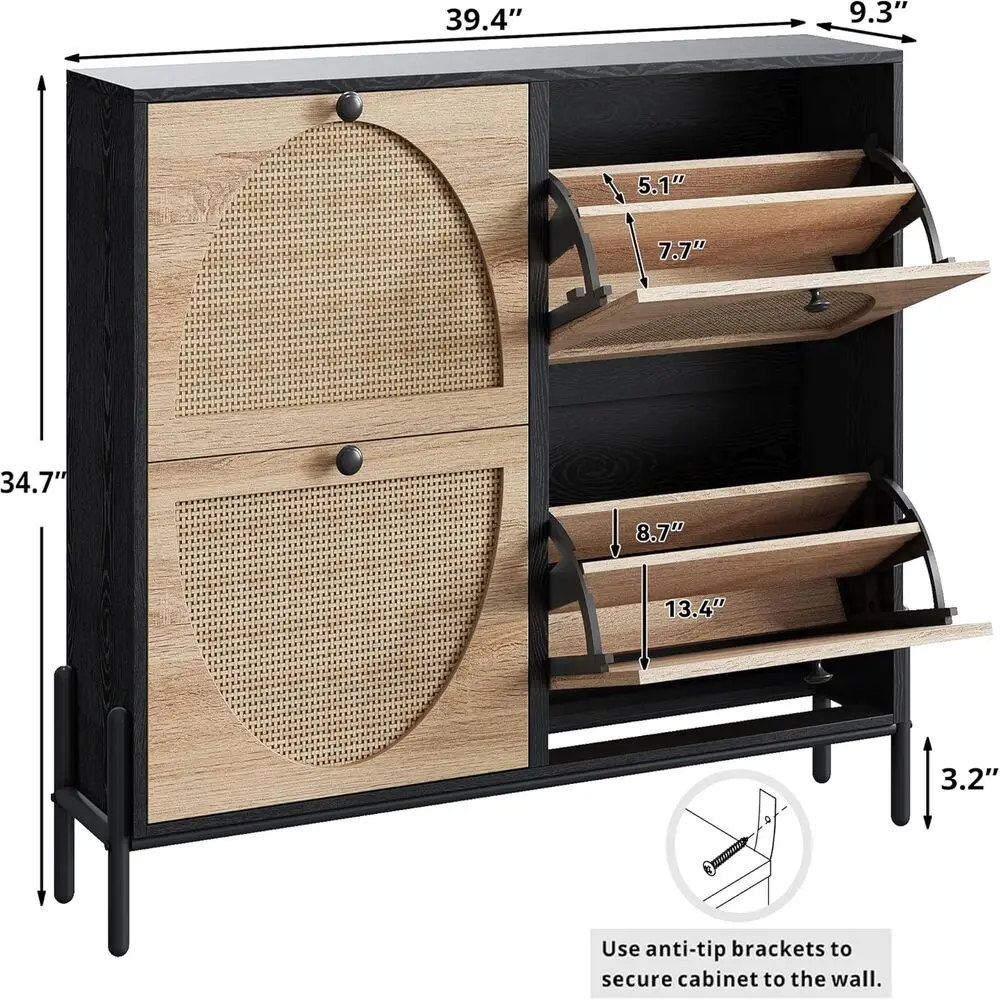 IRONCK Rattan Shoe Cabinet Storage with 4 Flip Drawers, Freestanding Shoe